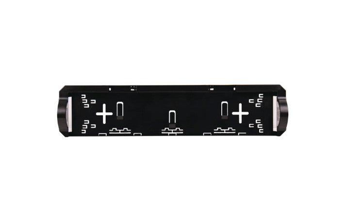 Integrierte LED-Beleuchtung auf beiden Seiten des Halters. Maße: 632 x 146 x 58 mm. Für Standard E-Kennzeichen. (520 x 120 mm).
