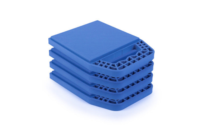 Universal-Unterlegplatten zum Höhenausgleich mit Griff im 4er Pack in blauer Ausführung.